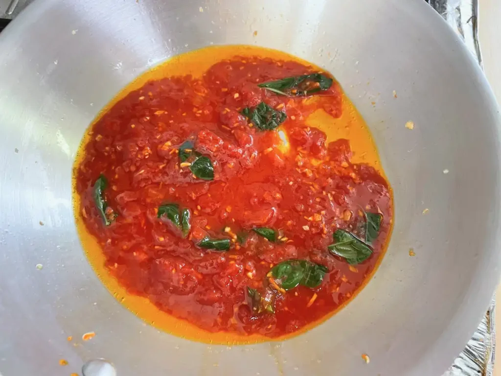 ホールトマト缶って、どうしてもトマトの「ジュースくささ」というか、若干の缶臭さが残ることがあるんですが、カンポグランデで作ったソースはその臭さがほとんどありませんでした。