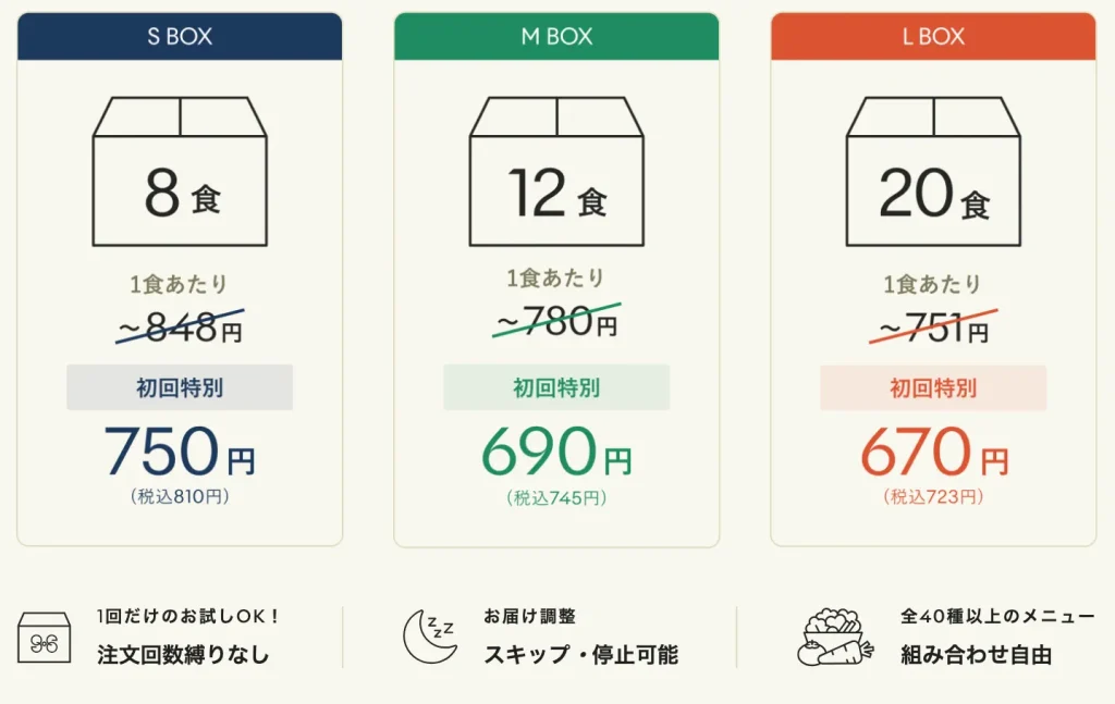 注文する個数が多いプランほど、1食あたりの単価が安くなる仕組みです。 - 送料は別途必要: