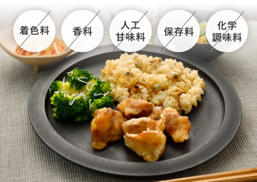 着色料、香料、化学調味料など5つの添加物は不使用。素材を活かした優しい味付けなので、小さなお子さんとシェアする時も安心です。国際的な食品安全基準を取得した工場で製造され、品質管理も徹底されています。