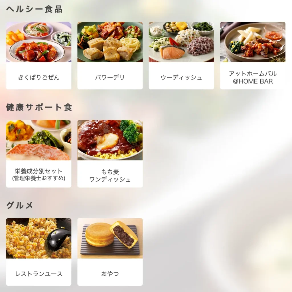 これらの中から選べば、自分で一つひとつメニューの栄養成分を確認する手間なく、目的に合った食事を簡単に始められます。