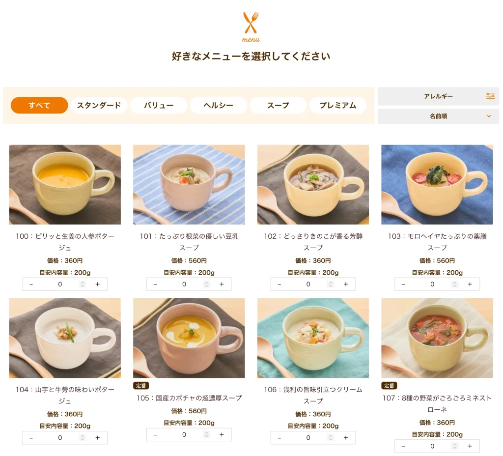 今回は「スタンダード」「バリュー」「ヘルシー」のなかから、良さげなやつを見つくろって注文しました。