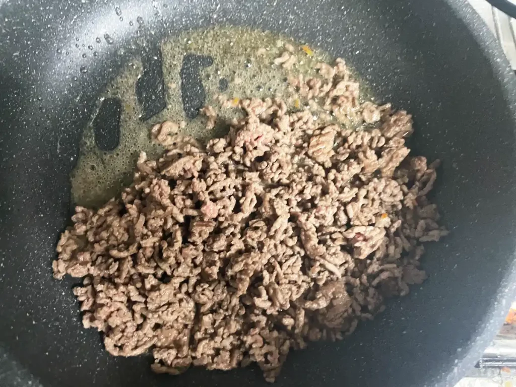 TOSHIシェフは野菜の中にそのままひき肉を入れていましたが、私は動物性の脂がギトギトなのは個人的にあまり好きじゃないので、ここでちょっとアレンジ。