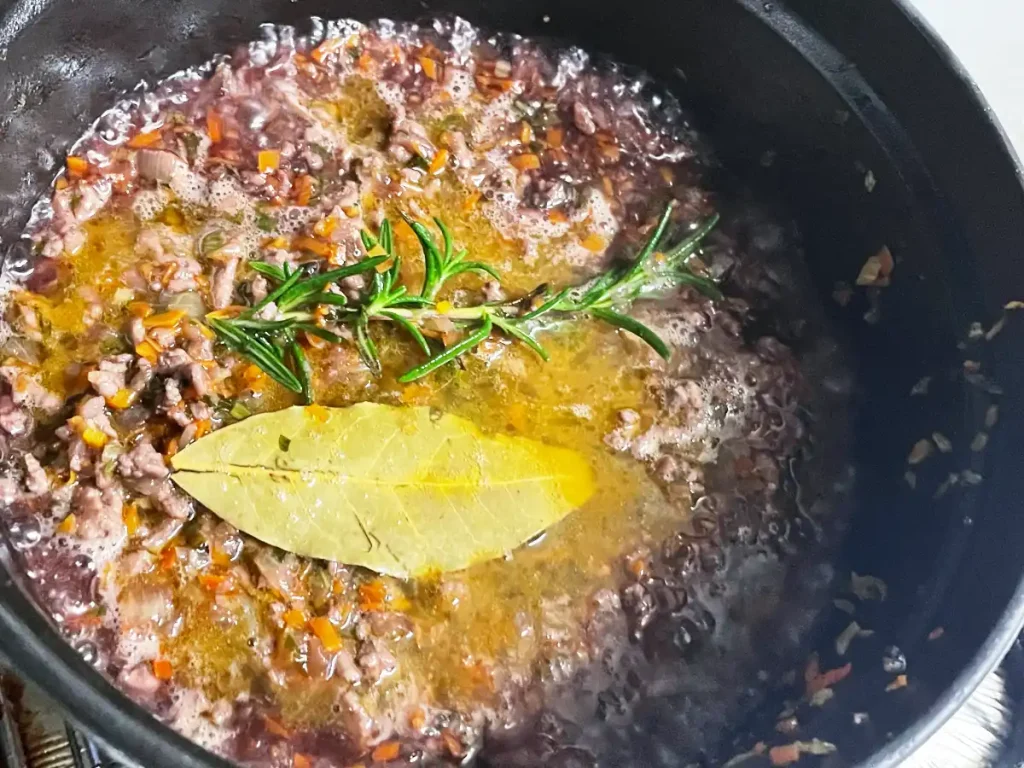 ローリエと、家の庭に生えてるローズマリーも投入。(ハーブはないならないでいいと思います)