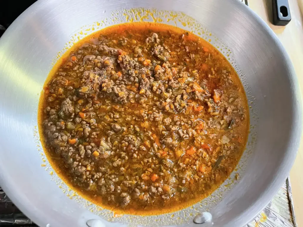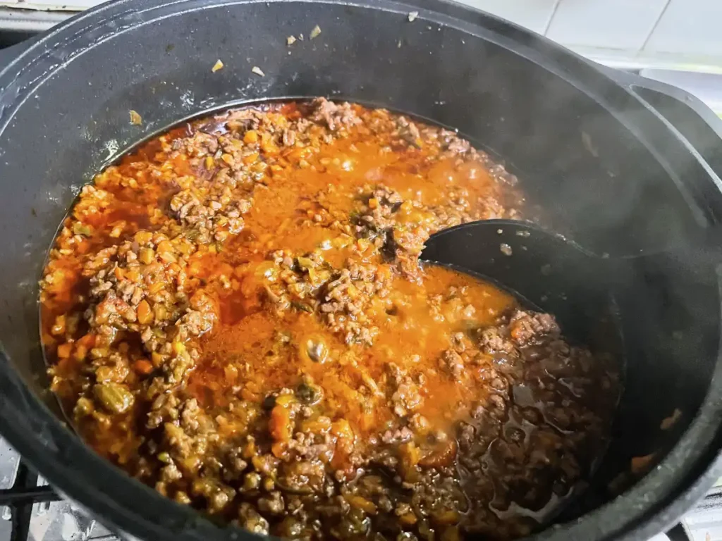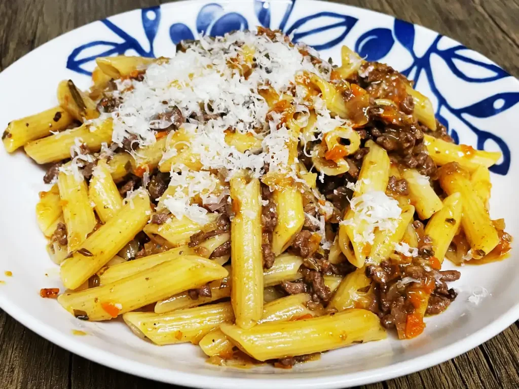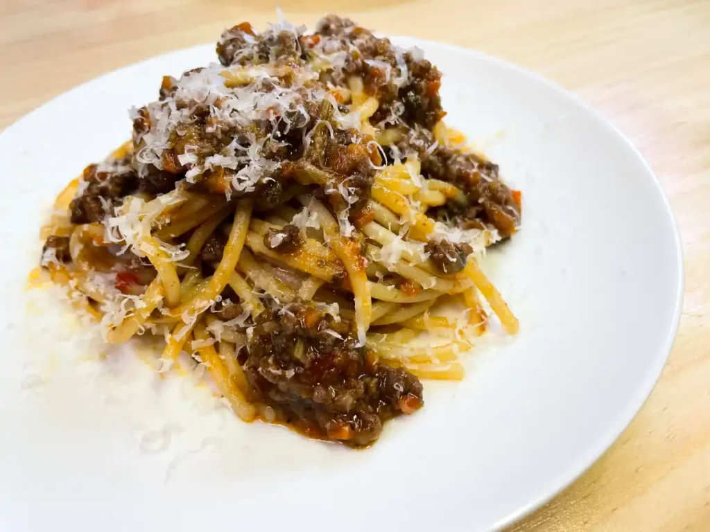 | 煮込み時間の延長 | ひき肉を約2時間じっくり煮込んだことで、肉がトロリと柔らかくなり、ソース全体に一体感が生まれました。 |